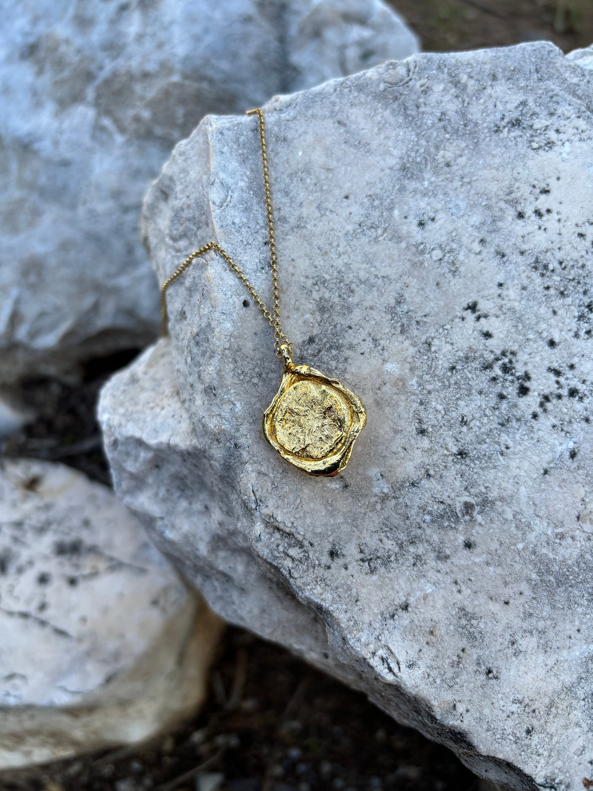 Medalla de bronce con baño de oro de 18 quilates, incluye la cadena de la foto.