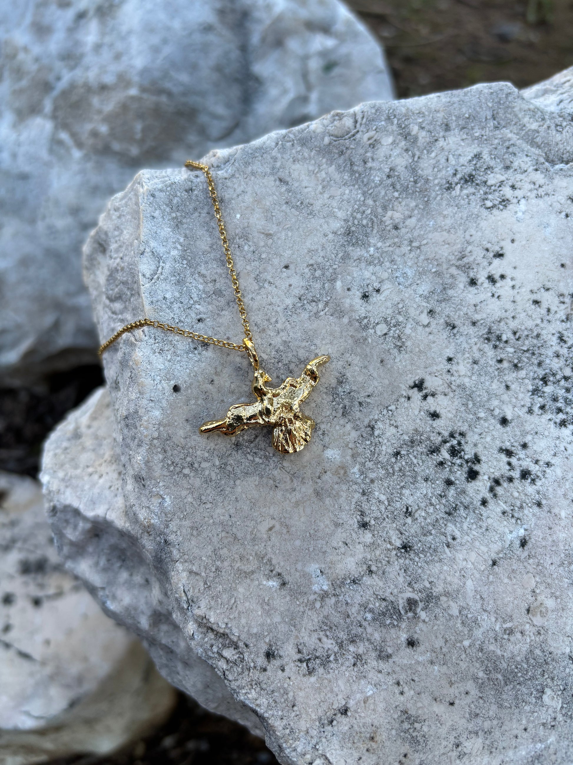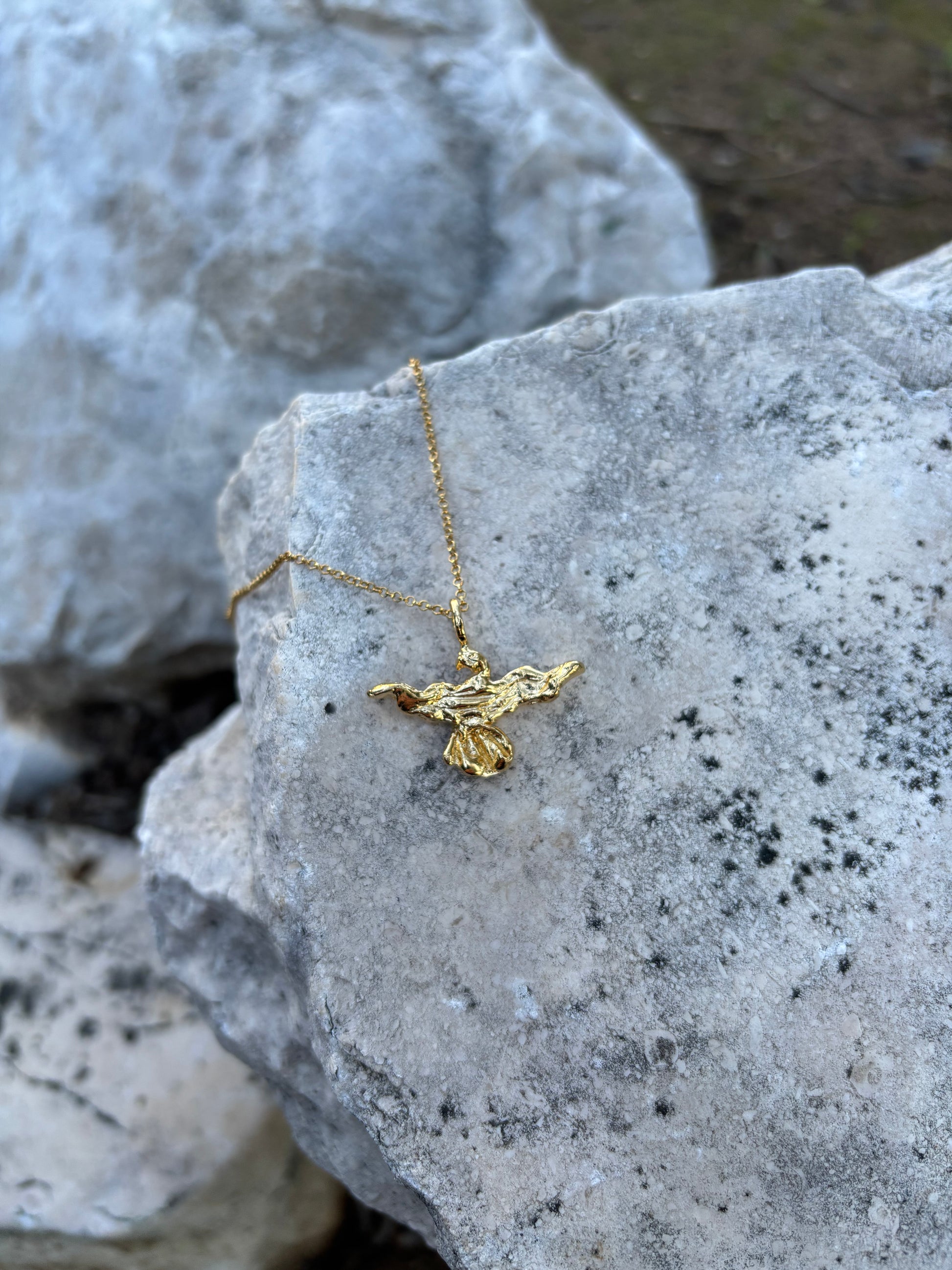 Medalla con forma de paloma de bronce con baño de oro de 18 quilates. Incluye la cadena.